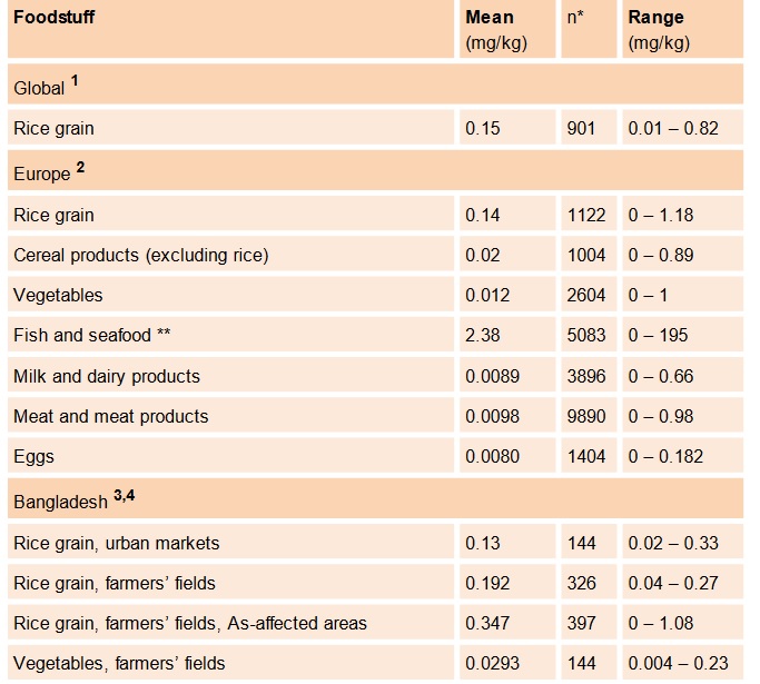 Human exposure to arsenic via food